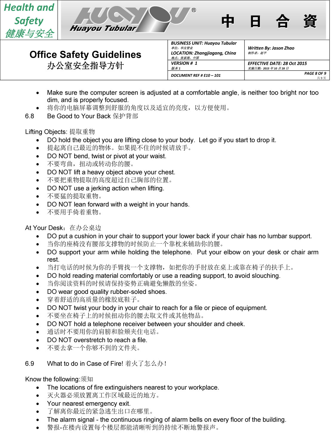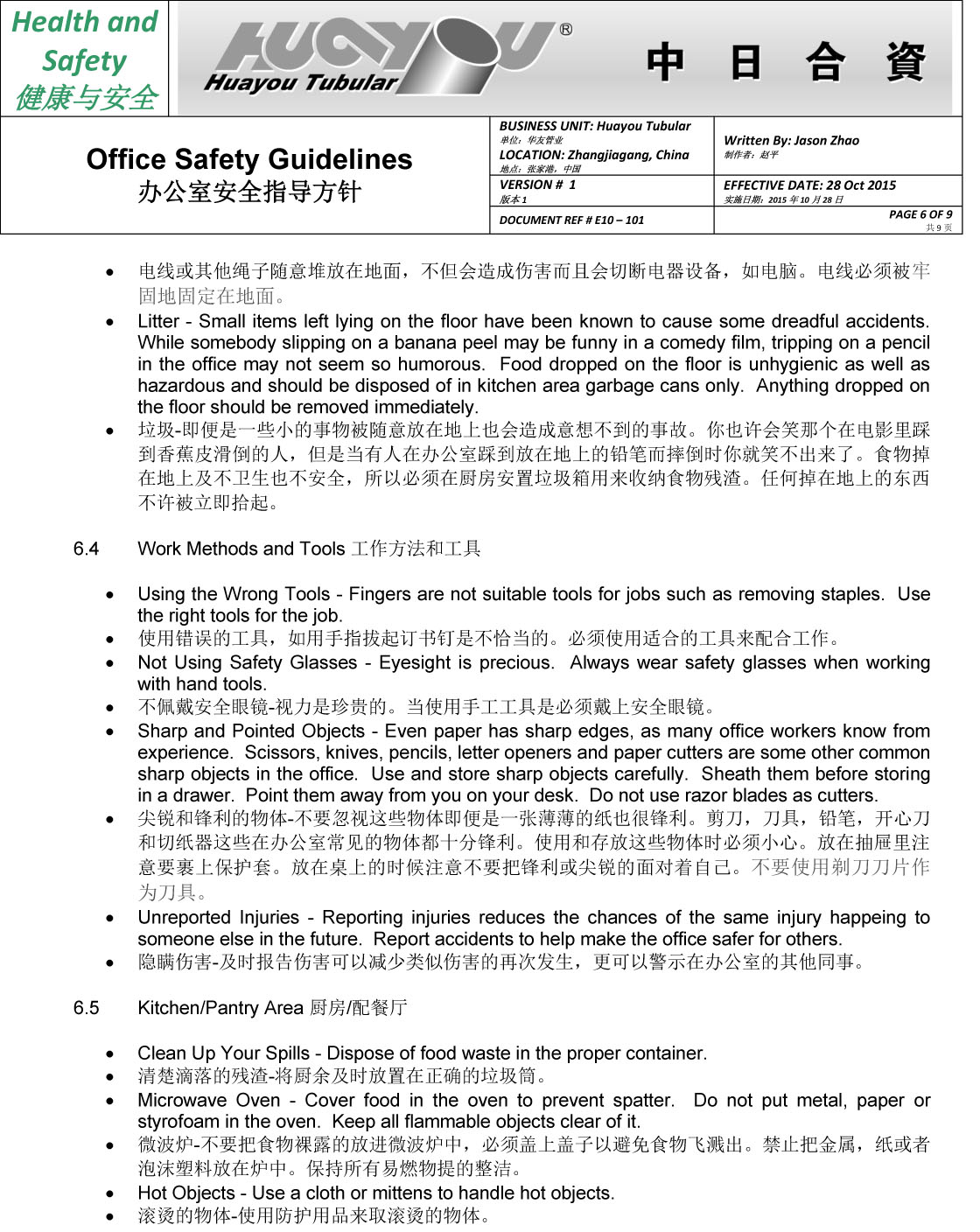 华友办公室安全指导方针